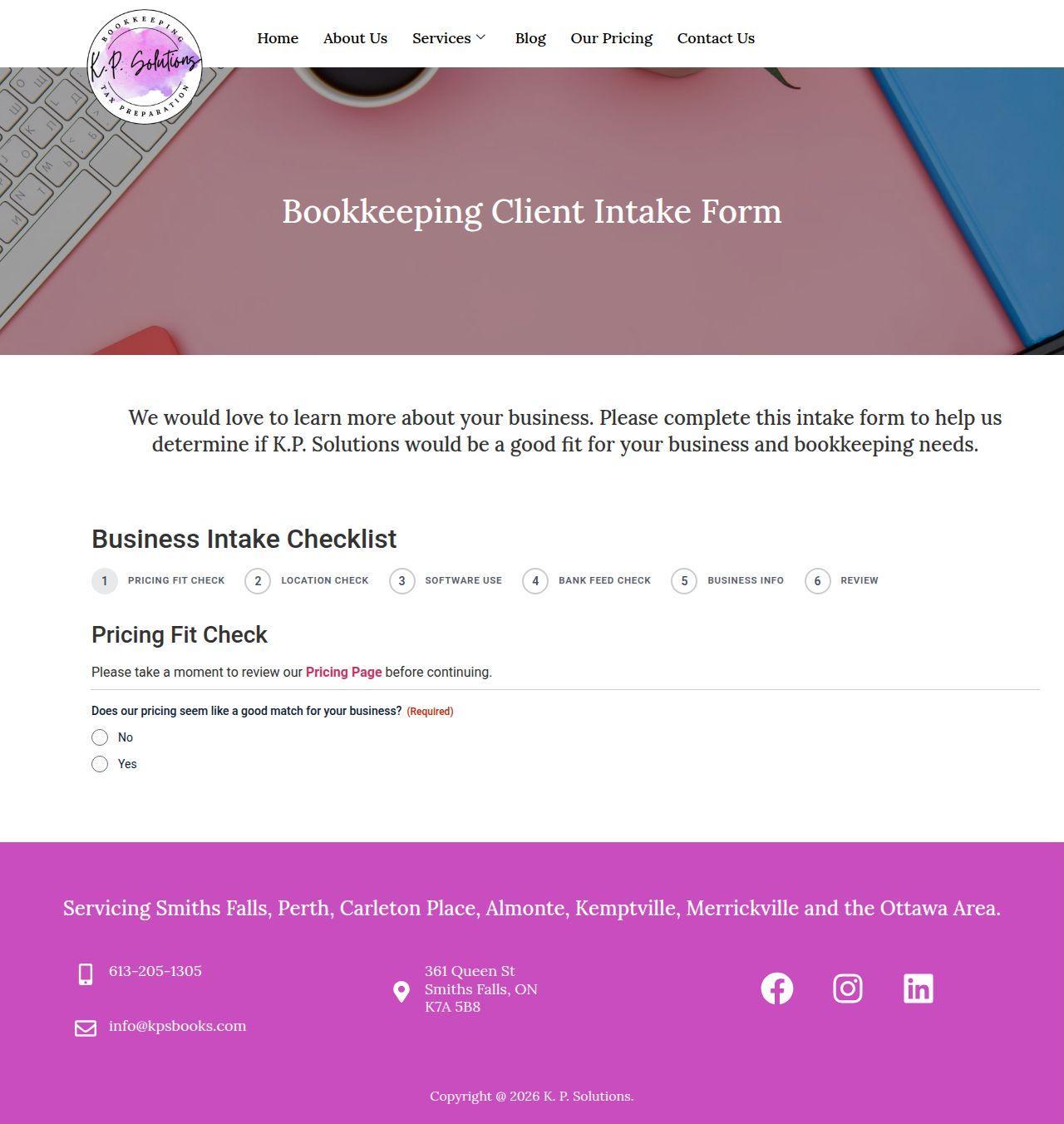 K.P. Solutions is a professional bookkeeping and tax preparation firm based in Smiths Falls, Ontario, serving small to medium-sized businesses and individuals across Eastern Ontario. Founded in 2018 by a veteran bookkeeper with nearly 25 years of industry experience, the firm specializes in transforming complex financial data into “cents and dollars out of chaos.”